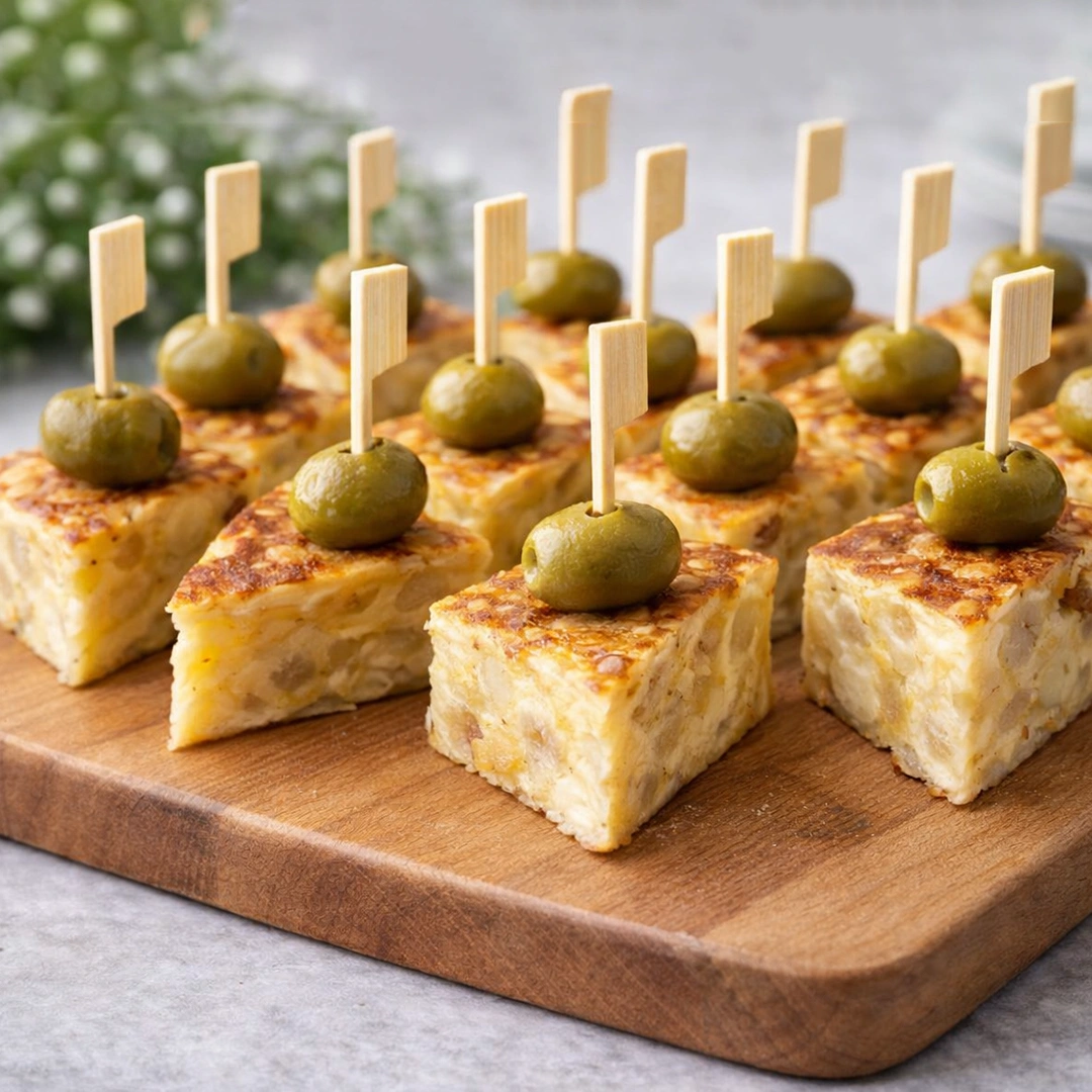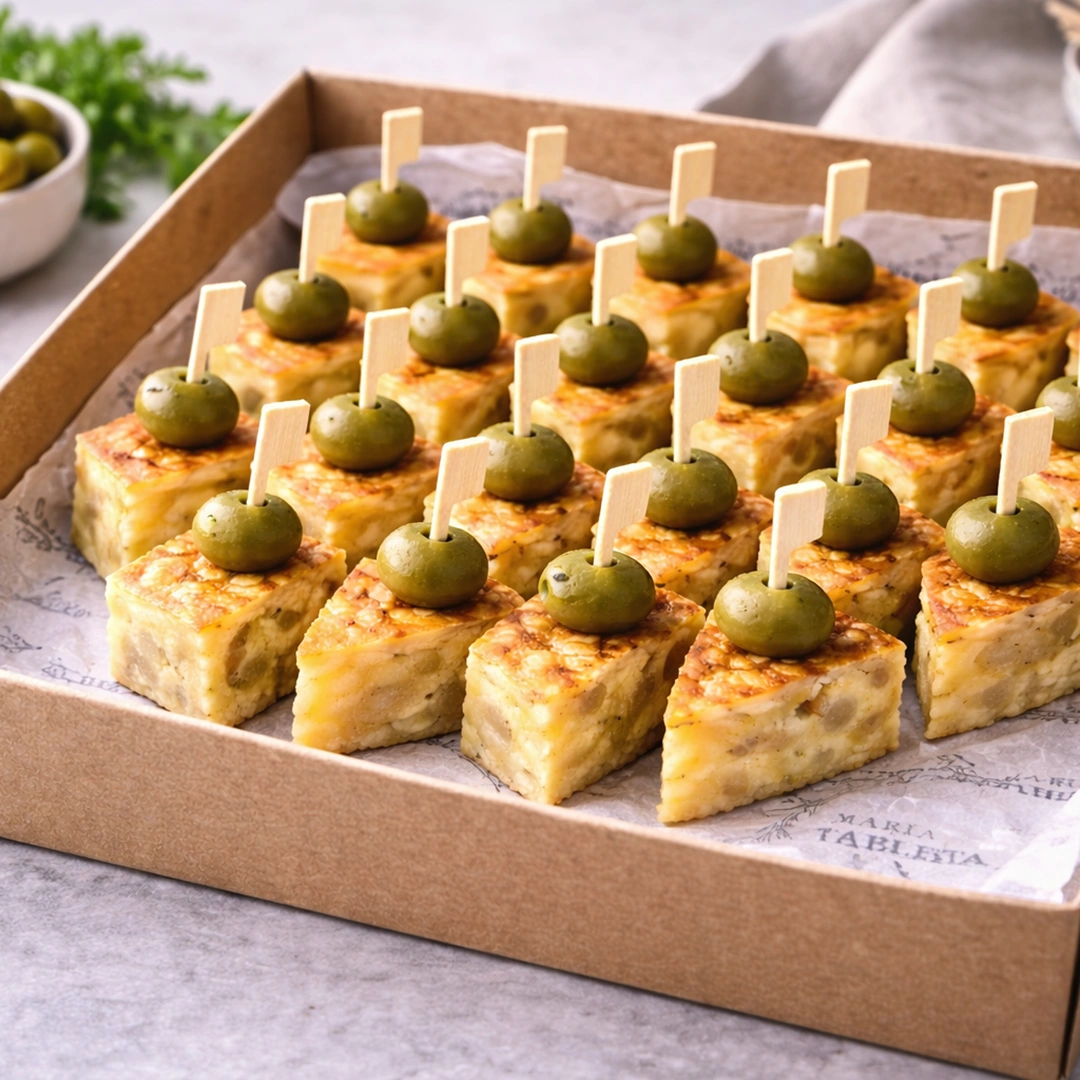 Un clásico español convertido en un pasabocas gourmet perfecto para eventos elegantes y reuniones memorables. Nuestro Pincho de Tortilla Española ofrece porciones suaves y doradas de tortilla tradicional, preparadas con una textura jugosa y sabor auténtico que encanta a todos los invitados.
